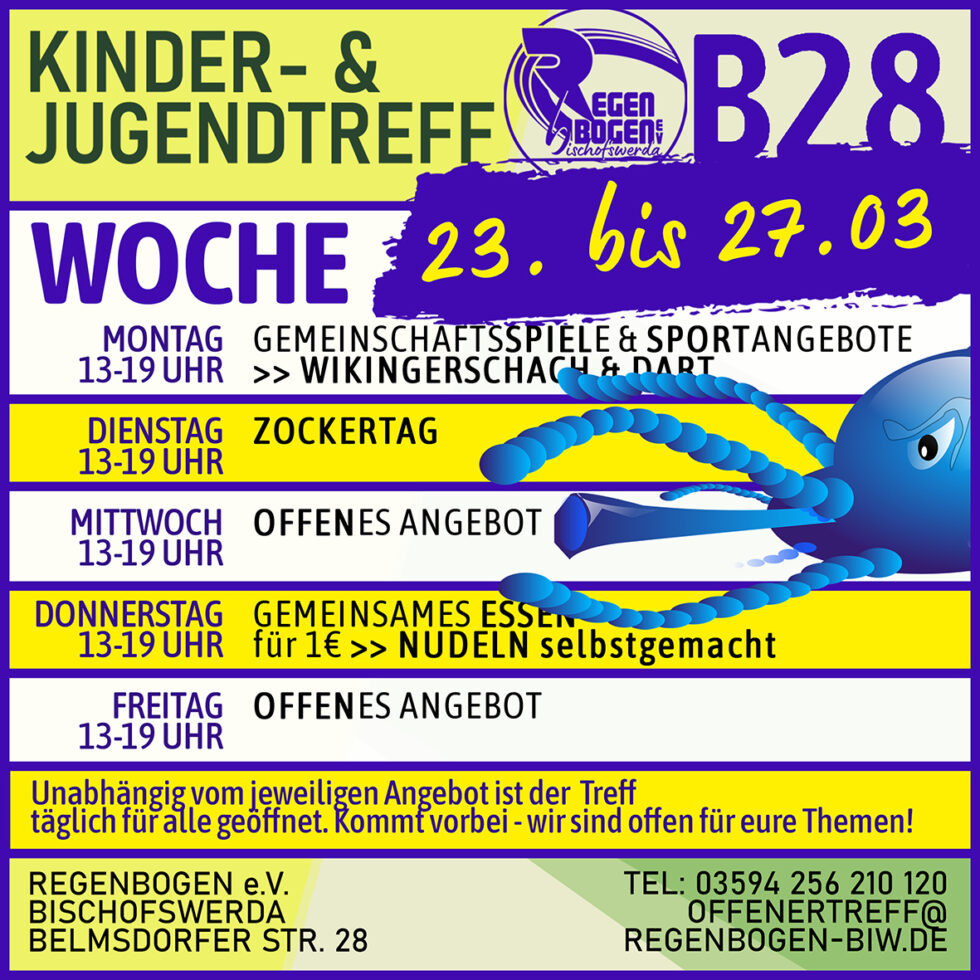 Jetzt, im tiefsten Herbst, ist im Offenen Treff der Generationen die Angebotspalette so umfangreich, dass es öfter lohnt, dem unwirtlich wechselhaften Treiben der Wettereien außerhalb zu entfleuchen und die herzliche und wohlwollende Gesellschaft im B28 zu genießen....